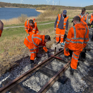 The Northumberland Line project have now held two days of volunteering at the narrow gauge railway in Ashington with volunteers from AECOM, SLC Rail, Network Rail and Northumberland County Council working together on their volunteer days to help the railway renew part of their track bed.